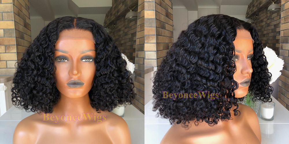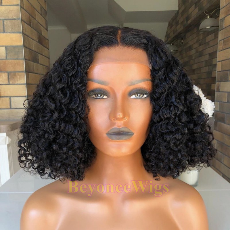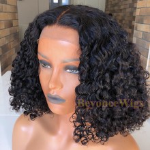 Brazilian human hair Pre plucked middle parting curly bob 360 lace wig--BYC350