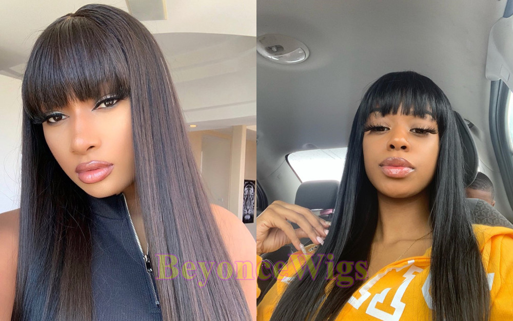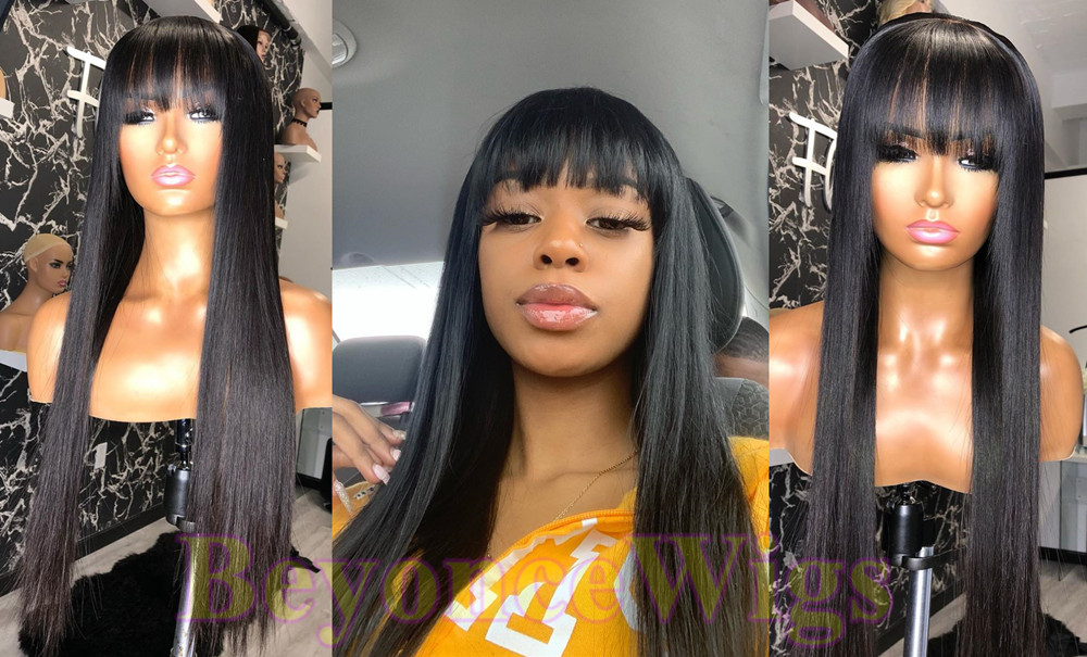 Brazilian human hair 13X6 lace front silk straight bang wig--BYC573