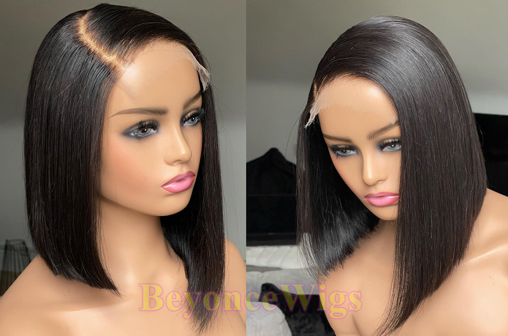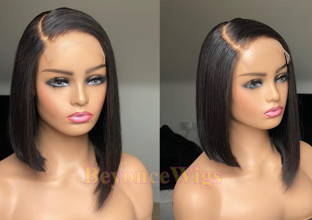 100% human hair 5*5 HD closure side parting bob wig--BHD118