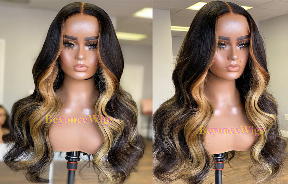 100% human hair Blonde Highlights body wave 5*5 HD lace closure wig--BHD211
