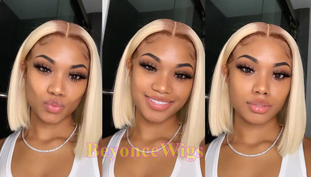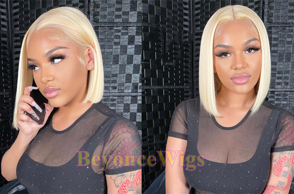 Glueless lace front human hair Beyonce 613 color blunt cut bob--BYC676