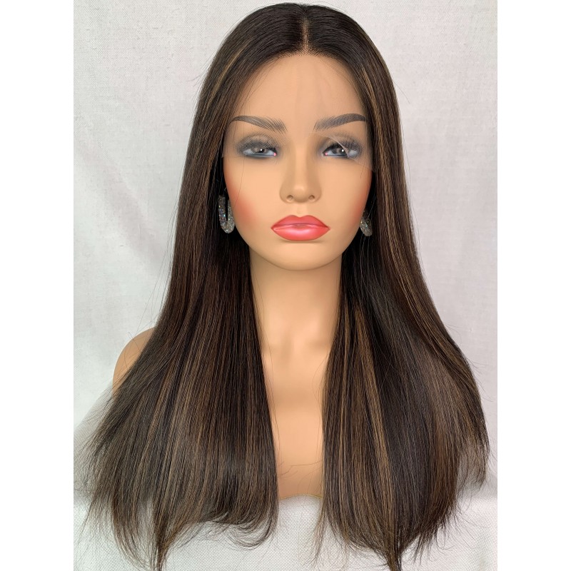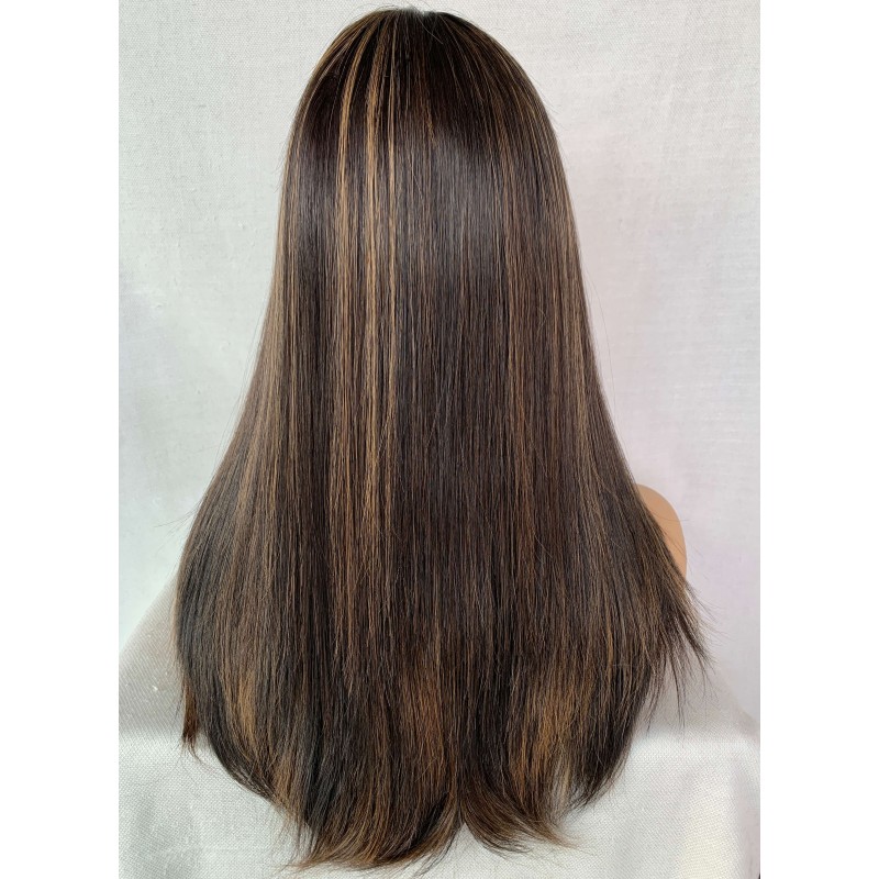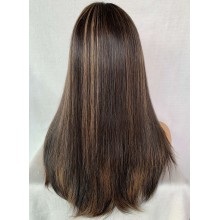 Jewish hair Highlights Color Silk Straight invisible Lace Wig -JX2812